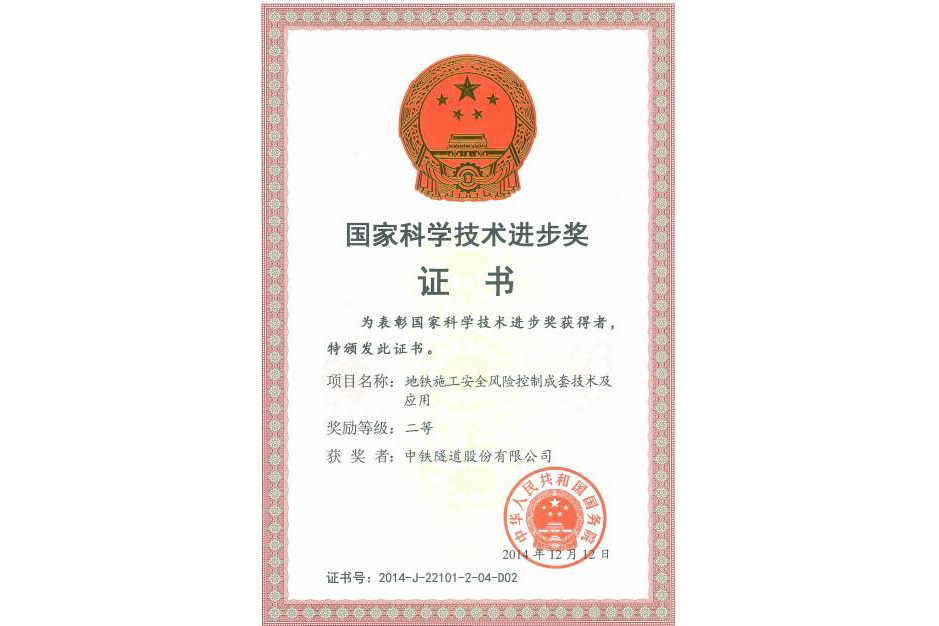 2014年國(guó)家科技進(jìn)步二等獎(jiǎng)-地鐵施工安全風(fēng)險(xiǎn)控制成套技術(shù)及應(yīng)用