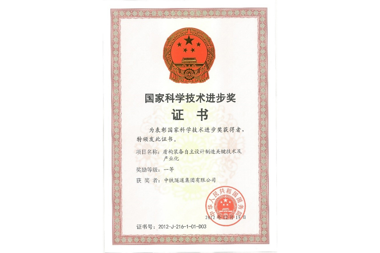 2012年國(guó)家科技進(jìn)步一等獎(jiǎng)-盾構(gòu)裝備自主設(shè)計(jì)制造關(guān)鍵技術(shù)及產(chǎn)業(yè)化